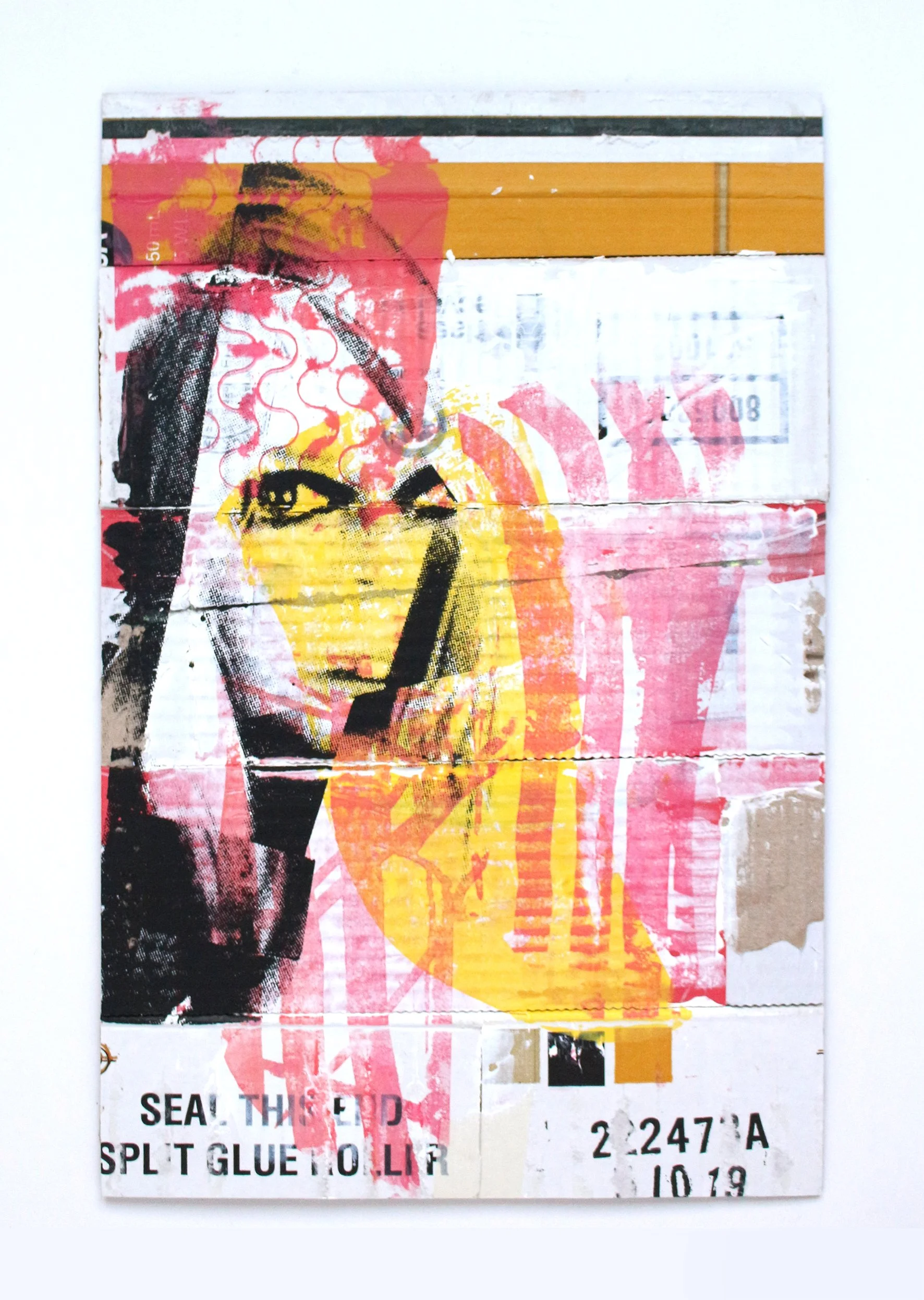Al heb ik geen uitsluitende favoriet, blijft o.a. deze uit de B.B.-reeks wel intrigeren. Ik tast daar af hoever je een iconisch figuur kan vervormen zodat die nog herkenbaar blijft. Die dualiteit opzoeken tussen vervorming en schoonheid. Zowel ondergrond als textuur spelen hierin mee. Tegelijk is het een a-typische, speelse en rebelse manier van iconen afbeelden. De combinatie met felle (fluo) kleuren, vlakken en lijnen, die vaak terugkomen in mijn werken, maakt dat die werken ook boeiend blijven om te maken.