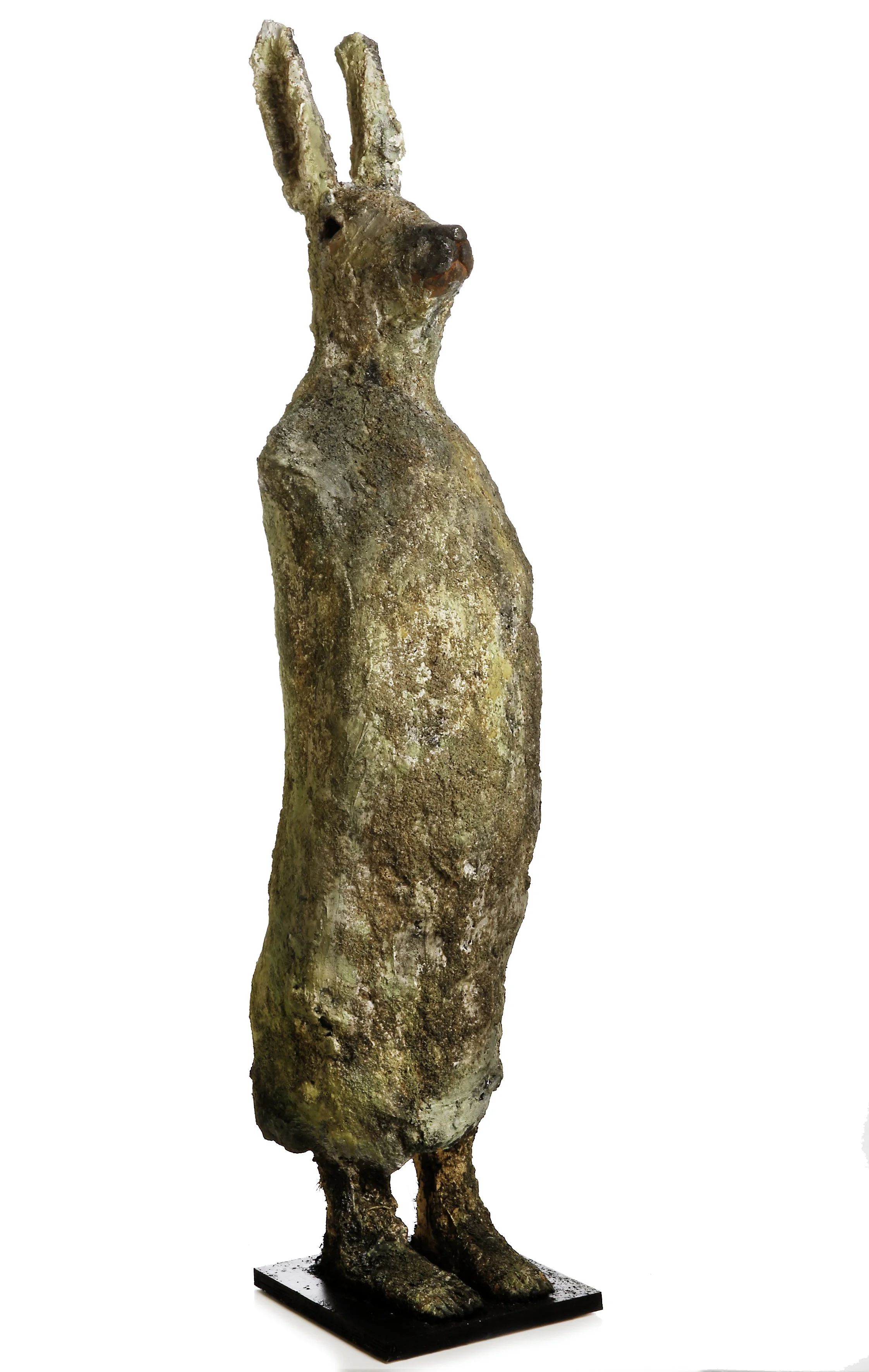 “Een deel van de sculptuur bestaat uit gebakken klei. Vervolgens wordt een assemblage of constructie gemaakt. Deze bestaat uit hout en/of ijzer. De afwerking gebeurt met gips die dan ingekleurd wordt met verschillende coatings en verven.
