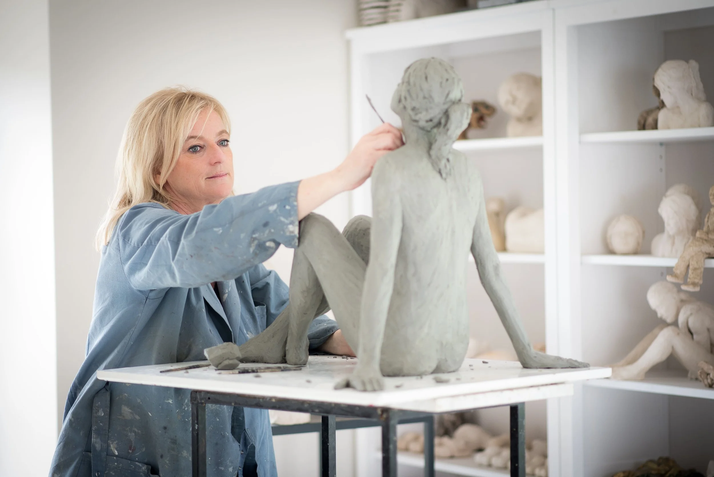 ““Soms word ik gegrepen door een bepaalde houding of emotie. Dat wil ik dan vastleggen. Om dit tot expressie te brengen, grijp ik naar klei. Ik hou van klei, het aardse. Het is een dankbare materie om mijn compositie op te bouwen.