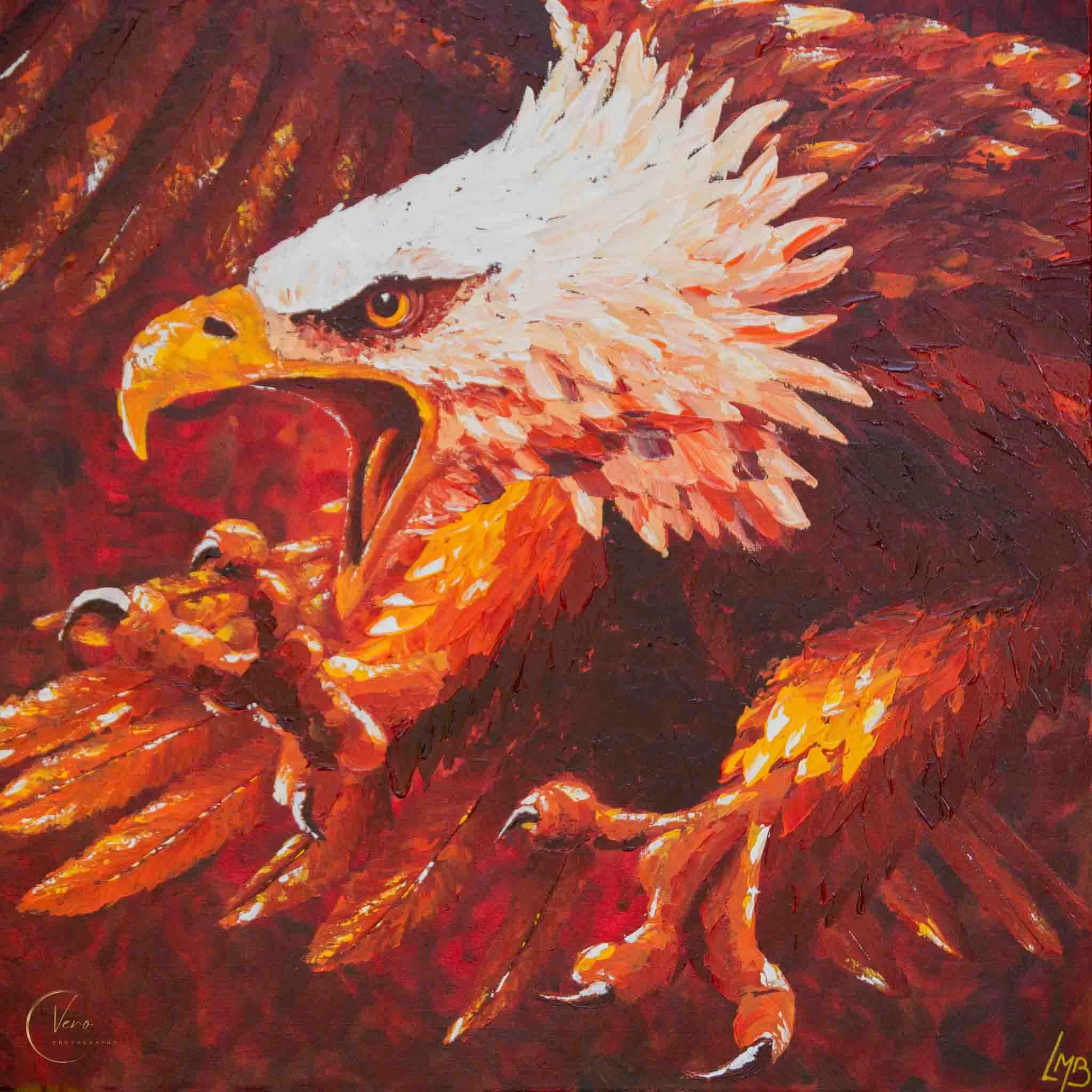 Mijn favoriete eigen kunstwerk is “Energyburst”, een schilderij van een raaf die letterlijk uit elkaar lijkt te barsten van energie. Het werk stelt voor mij een keerpunt voor – het moment waarop je beseft dat je niet overal je energie aan moet geven, maar bewust mag kiezen waar je jezelf in investeert.