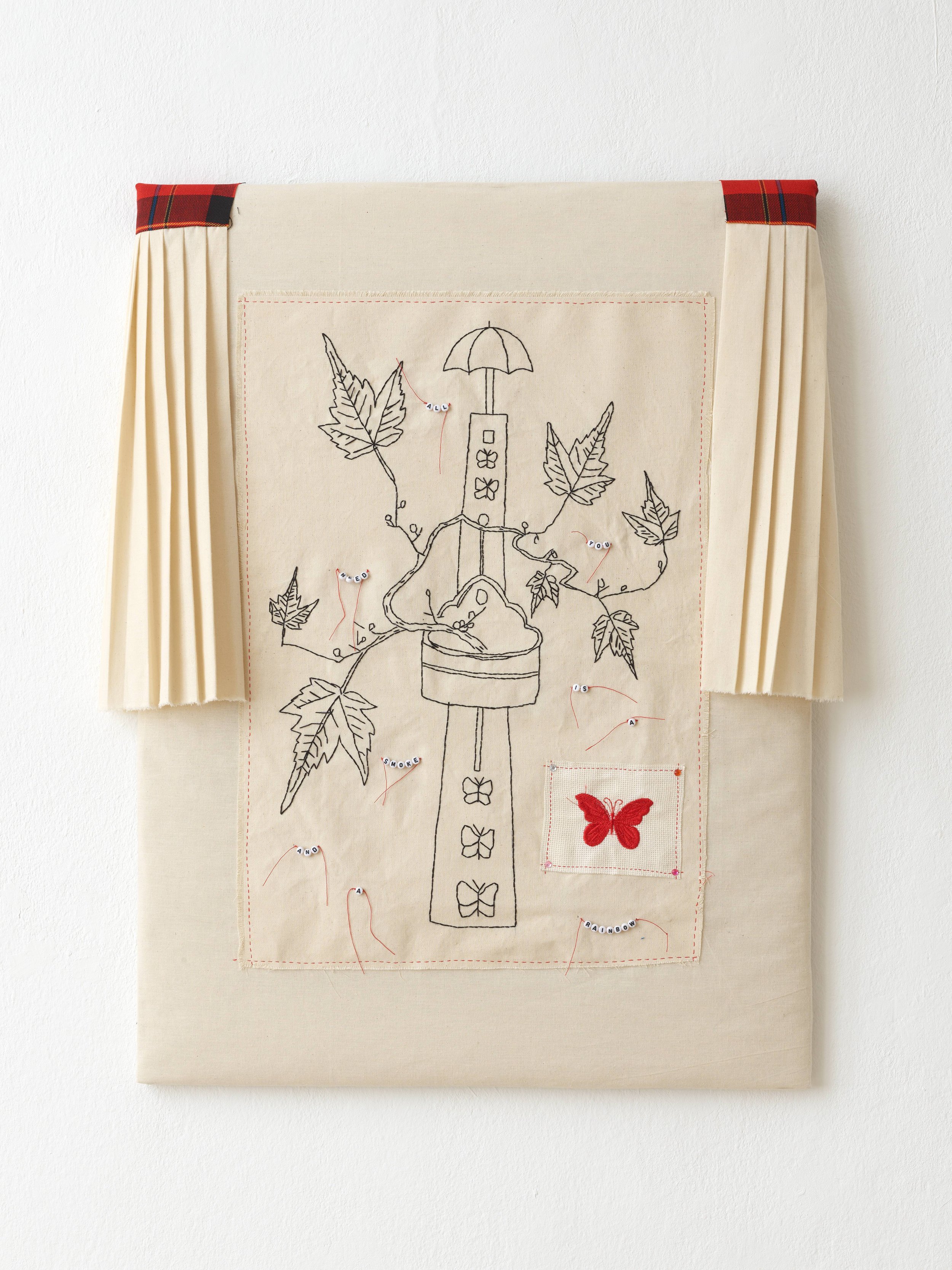 “Vertrekkende uit vakmanschap en het continue onderzoeken van de mogelijkheden van de technieken (weven & borduren), binnenin de Belgische traditie, naar een hedendaagse vertaling brengen.”