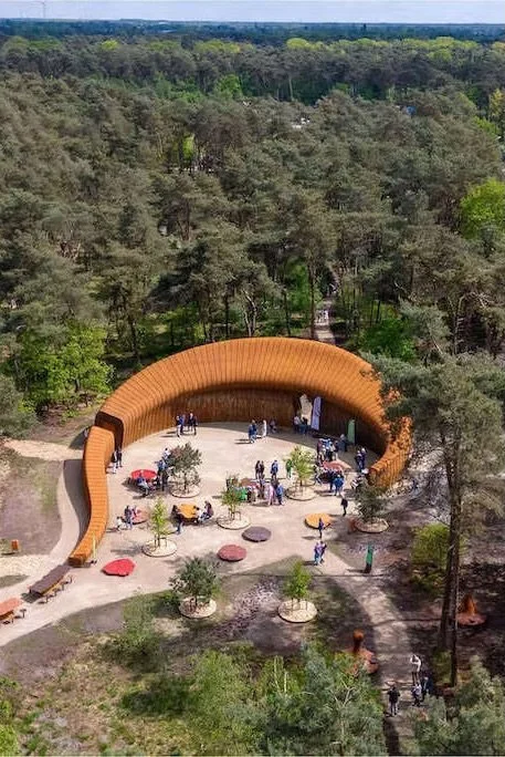 Het publieke kunstwerk is monumentaal, complex en ligt in symbiose met haar omgeving.